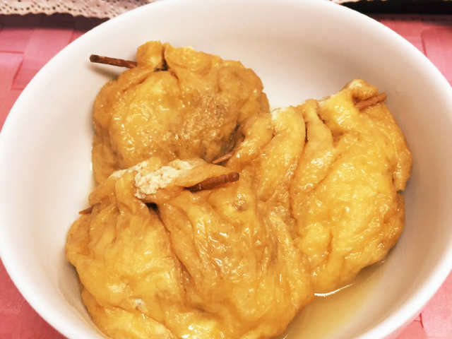 おでんの具 油揚げでロールキャベツ風巾着 レシピ 作り方 By