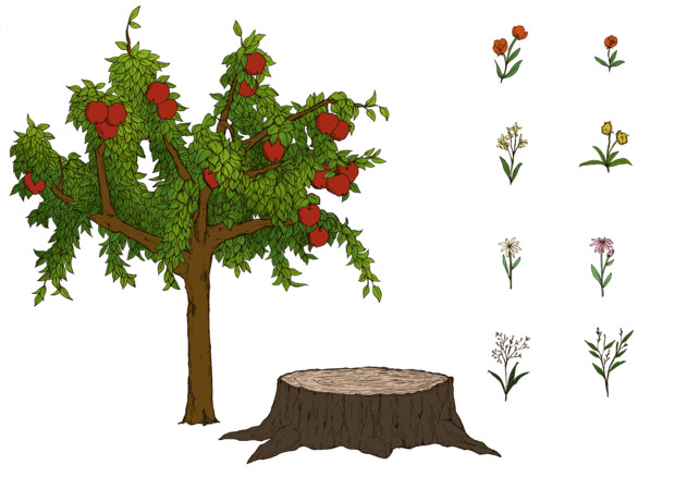 フリー素材 りんごの木 草花 切株のセット Sora さんのイラスト ニコニコ静画 イラスト