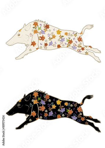 和柄で装飾されたイノシシ イラストセット Adobe Stock でこの