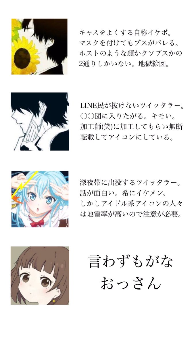 ツイッターやインスタ Lineのアイコンに漫画やアニメのキャラクターは
