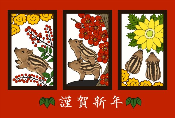 Kaji On Twitter 2018年賀イラスト フリー オリジナル 年賀状 猪