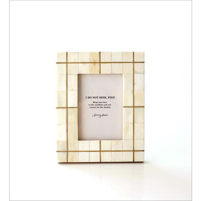 フォトスタンド 写真立て シェル素材 ホワイト ゴールド L判 フォト